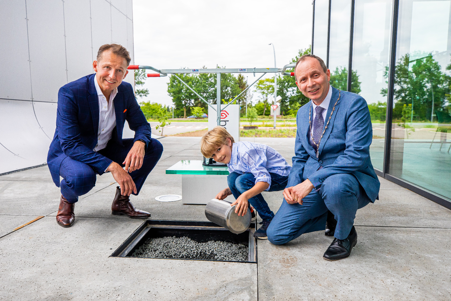 Valkenswaard, 10 juni 2022 – Vandaag is B.Home geopend, het nieuwe duurzame hoofdkantoor van Brabantia in Valkenswaard. Onder toeziend oog van het personeel, de familie en betrokkenen bij de bouw verklaarden CEO Tijn van Elderen en de burgemeester van Valkenswaard Anton Ederveen het gloednieuwe, duurzame pand officieel voor geopend. Samen met de jongste aanwezige van de vijfde generatie van het familiebedrijf plaatsten zij hiervoor een timecapsule onder een glazen plaat naast B.Home. De eyecatcher aan de Leenderweg 182 is tevens de nieuwe thuisbasis van zusterbedrijf Dutchdeluxes.