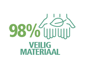 We willen dat de materialen die we gebruiken tijdens de productie, verwerking en het gebruik zo veilig mogelijk zijn voor mens en milieu. Daarin gaan we verder dan wettelijk moet. Volgens de wet zitten we al op 100% veilig materiaal, maar volgens onze eigen normen scoren we in 2024 99%.