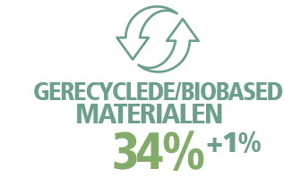 Dit blijft een van onze meest uitdagende ambities, maar we boeken gestaag vooruitgang. In 2024 zijn we gestegen naar 43%, dankzij een breder gebruik van gerecycled karton en plastic in onze verpakkingen, dat we zijn gaan meenemen in onze metingen.