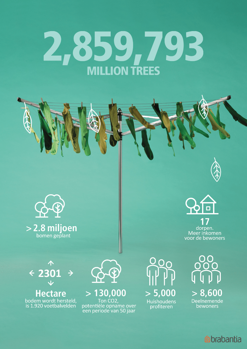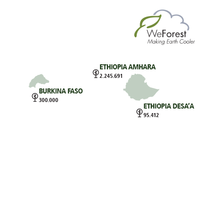 Brabantia werkt al sinds 2014 samen met WeForest. Als onderdeel van de succesvolle Love Nature campagne zijn er inmiddels meer dan 3 miljoen bomen geplant in de Amhara en Desa’a regio’s in Ethiopië en in Burkina Faso.