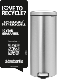 Brabantia scoort in 2021 al 33% op gebruik gerecycleerd materiaal en 94% van het materiaal van onze producten kan na gebruik worden gerecycleerd om nieuwe producten te maken.