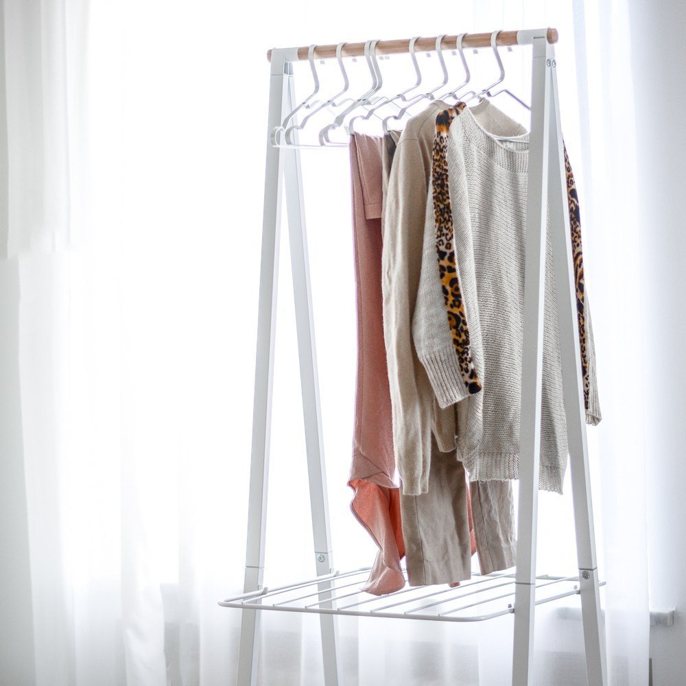 Mijn persoonlijke favoriet? Het witte kledingrek! Het ziet er zo licht en elegant uit, er kunnen best veel kleren opgehangen worden, en neemt niet eens veel plaats in. Ik koos ook voor de aluminium kleerhangers, die de look extra stijlvol maken. Je kan het kledingrek gebruiken als droogrek, of om gewoon je mooiste items op te hangen. Ik gebruik het voor allebei. Bovenaan hang ik de kleding die ik nog ga dragen, in het midden hang ik eventuele gewassen kleding te drogen, en onderaan zette ik een wasmand waarin ik de vuile was gooi. Het resultaat: mijn slaapkamer – want daar staat het kledingrek nu – is eindelijk ordelijk. Ongelooflijk.