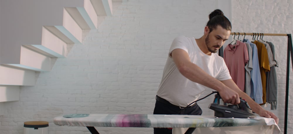 Beim Bügeln verbrennen Sie über 100 Kalorien pro Stunde. Und wenn Sie den Wäschekorb während dessen auf dem Boden stehen lassen, machen Sie zusätzlich ein paar nützliche Dehnübungen!