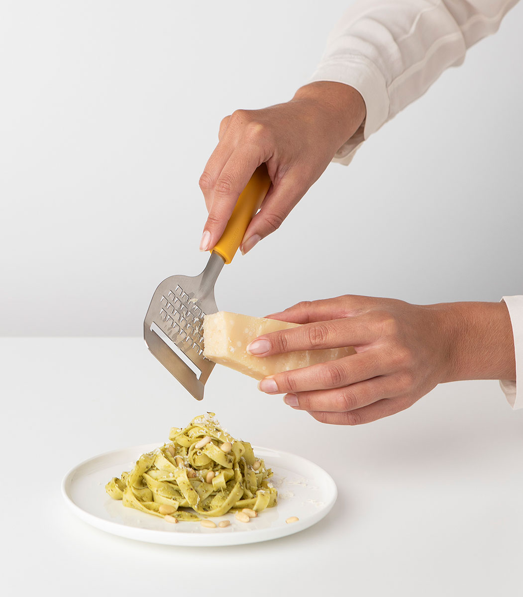 dank einer Universalreibe mit Löchern in verschiedenen Größen können Sie je nach Wunsch feiner oder gröber reiben.
