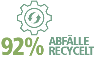 | Wir haben die Abfallerfassung in der Produktion und in unserem Lager verbessert. Aufgrund geringerer Auftragsvolumina ist unsere Recyclingquote jedoch leicht gesunken und liegt nun bei 93%. |