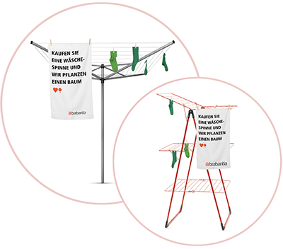 Wenn Sie sich für ein Trockengestell von Brabantia entscheiden, tun Sie der Umwelt viel Gutes, denn gemeinsam mit WeForest pflanzen wir jeweils einen Baum für jede verkaufte Wäschespinne, sowie jedes Trockengestell.
