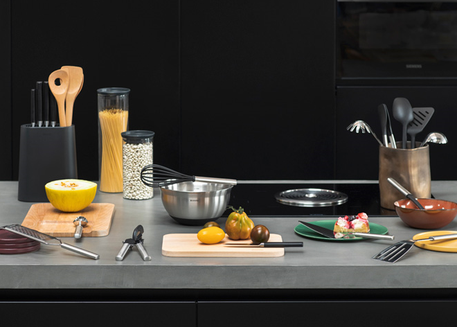 Genießen Sie das Kochen mit den neuen Brabantia Profile Küchenhelfern noch etwas mehr. Eine komplette Kollektion von fast 60 edlen Küchenhelfern, Messern und Schneidebrettern aus zeitlosem Metall und Schwarz- oder Buchenholz. Klare Linien, echtes Design und höchste Qualität – die neuen Profile Küchenhelfer lassen Köche den Mund wässrig werden!