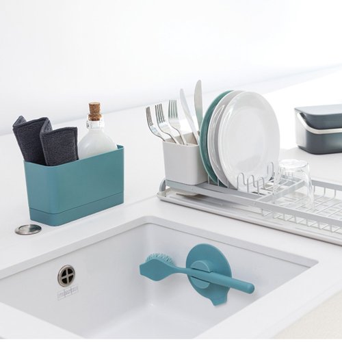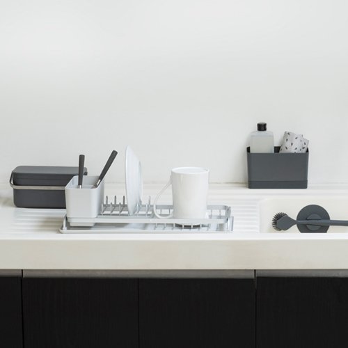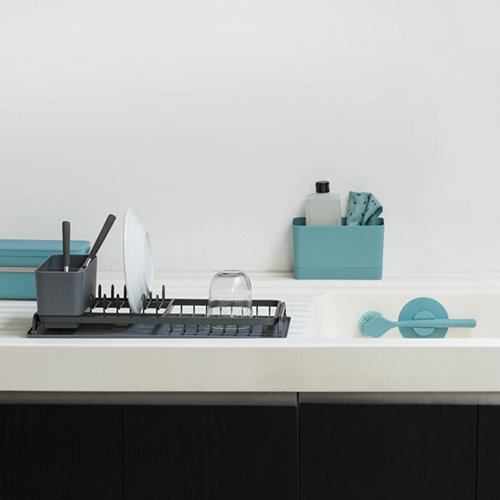 Möchtest du deinen Tag mit einer aufgeräumten Küche beenden? Nach dem Abwasch ist es Zeit, um ein wenig aufzuräumen. Elegant, stilvoll und mit einem Auge fürs Detail entworfen, um den aktuellen Küchentrends zu entsprechen. Die Reinigungsprodukte in unserer SinkSide-Kollektion haben es in sich. Zum Beispiel das Reinigungs-Set: Schwämme, Tücher, eine Spülbürste und ein Tellerschaber in einem Organizer mit beweglichem Fachtrenner und eingebauter Tropfschale. Das sieht gut aus, oder?