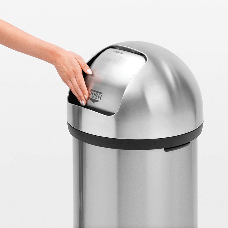 Otra opción es el sistema a presión. Solo tienes que presionar la tapa para abrir el cubo, la cual vuelve a su sitio gracias a la acción del muelle. Aquí también puedes usar ambas manos para tirar los residuos. Lo único malo es que estos entran en contacto fácilmente con la tapa, por lo que se ensucia más rápido.