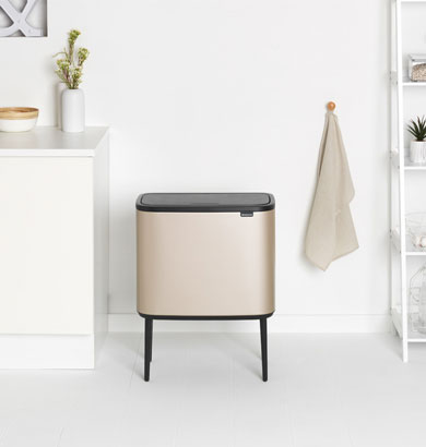 Con esta opción clásica solo tienes que presionar la tapa para abrirla. Esta se cerrará cuando hayas tirado la basura. Lo genial de este cubo es que está disponible en distintos tamaños y colores para hacer juego con cualquier cocina. Puedes elegir uno liso y brillante o uno mate y moderno. Crea un contraste con los colores de tu cocina o haz que combine. ¿Qué tal si colocas dos o tres juntos para mostrar tu compromiso con el reciclaje?