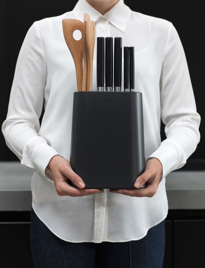 En total, la línea Profile de Brabantia ofrece casi 60 utensilios de cocina, cuchillos y tablas de cortar fabricados en un tono metal y negro atemporal o en madera de haya. Líneas limpias, puro diseño y la más alta calidad - ¡los nuevos utensilios de cocina Profile seguro que harán que te entren ganas de cocinar!