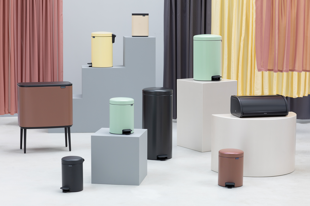 Los colores pueden marcar la diferencia. Nuestro equipo de diseño de Brabantia eligió una nueva paleta de colores para 2024, compuesta por los colores de moda Jade Green, Mellow Yellow y el elegante Satin Taupe, y los colores combinables Mineral Infinite Grey, Confident Grey y Soft Beige. Son colores preciosos por sí mismos, pero también se pueden mezclar y combinar. Los nuevos colores brillan con luz propia en nuestros cubos de pedal NewIcon y Bo, cubos Touch e incluso en las paneras.
