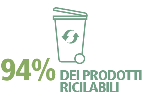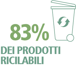 Il nostro percorso verso prodotti 100% riciclabili continua – anche se non è sempre lineare. Nel 2024, il nostro tasso di riciclabilità è sceso all'83%, a dimostrazione di una misurazione più onesta e trasparente. Non ci fermeremo finché non avremo raggiunto il pieno 100%!
