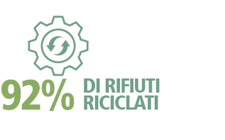 Abbiamo migliorato la raccolta dei rifiuti nella produzione e nei magazzini, ma a causa del calo degli ordini, il nostro tasso di riciclo è leggermente sceso al 93%.