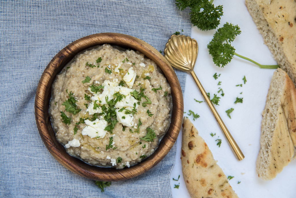 Maak je borrelplank compleet met deze auberginedip. Perfect voor op platbrood, maar ook heerlijk om te dippen met groenten zoals komkommer en paprika.