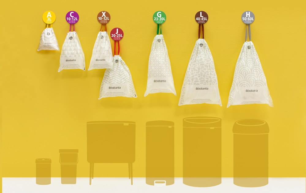 Dankzij de kleurcodering in je Brabantia afvalbak vind je de juiste zak. Kijk naar de kleurcode in je en match deze met de bijpassende PerfectFit-verpakking. Zo ben je altijd verzekerd van een perfecte pasvorm.