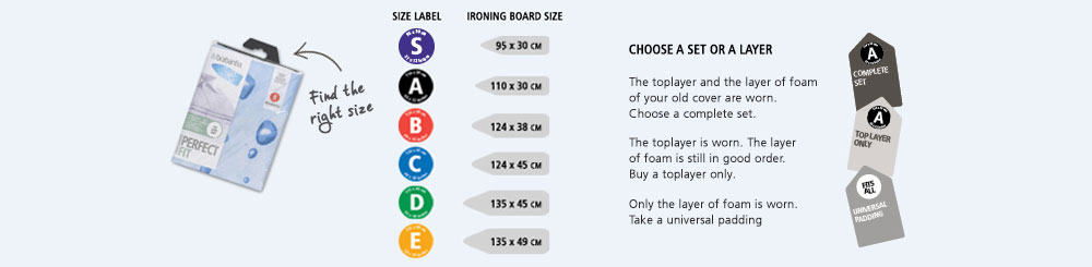 Brabantia’s range of ironing table covers ensures you have plenty of choice when it comes to fabrics and materials. You may require a metalised cotton ironing board cover or be happy with a basic cotton covering. Our range covers every fabric and material covering you could look for, ensuring plenty of choice when it comes to patterns, styles and sizes.