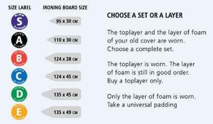 We stock a good range of ironing board cover sizes to suit our customers, with a fair range of products to suit different board sizes, whether you have a small ironing board or an extra large or wide ironing board.