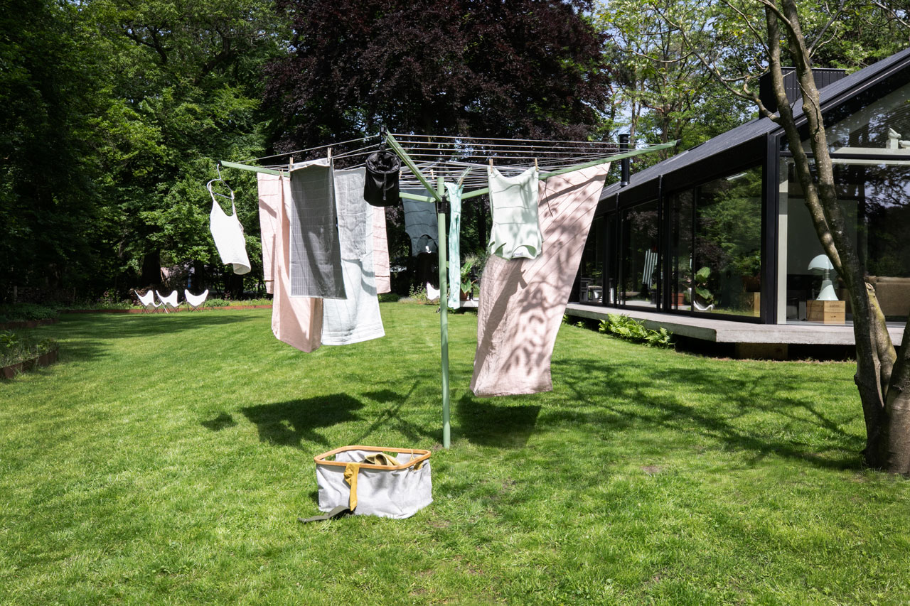 The cheapest dryer is a rotary clothesline. Drying your laundry outdoors is better for the planet, saves you money and you get that lovely fresh air scent for free. And did you know keeping your clothes out of the tumble dryer extends their life? Bonus: Sun and wind are doing some great work in removing creases in your clothing. All Brabantia rotary clotheslines are fully weatherproof, strong and sturdy, but also easy to move and open. The clothesline we use is super sturdy and easy to put up thanks to the rotary system’s clever 'umbrella-system'. And, of course, you get a 5 year warranty on every Brabantia rotary clothesline.