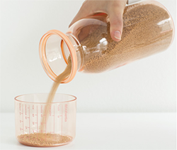 Our smart storage containers have clear markings on the measuring cup that allows you to measure out just the right portion size.
